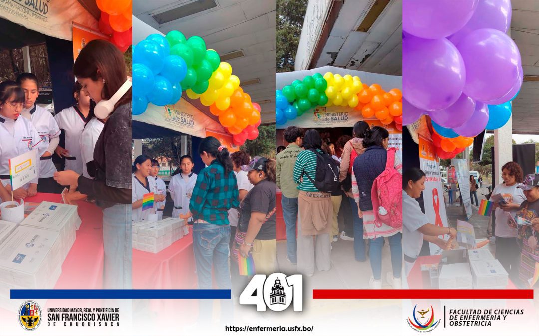 El pasado sábado 28 de junio, estudiantes de la Facultad de Ciencias de Enfermería y Obstetricia de la Universidad San Francisco Xavier de Chuquisaca participaron en el Grand Pide Fest – Feria de Emprendedores LGBTIQ+, desarrollado en la Ex Estación Aniceto Arce de la ciudad de Sucre.